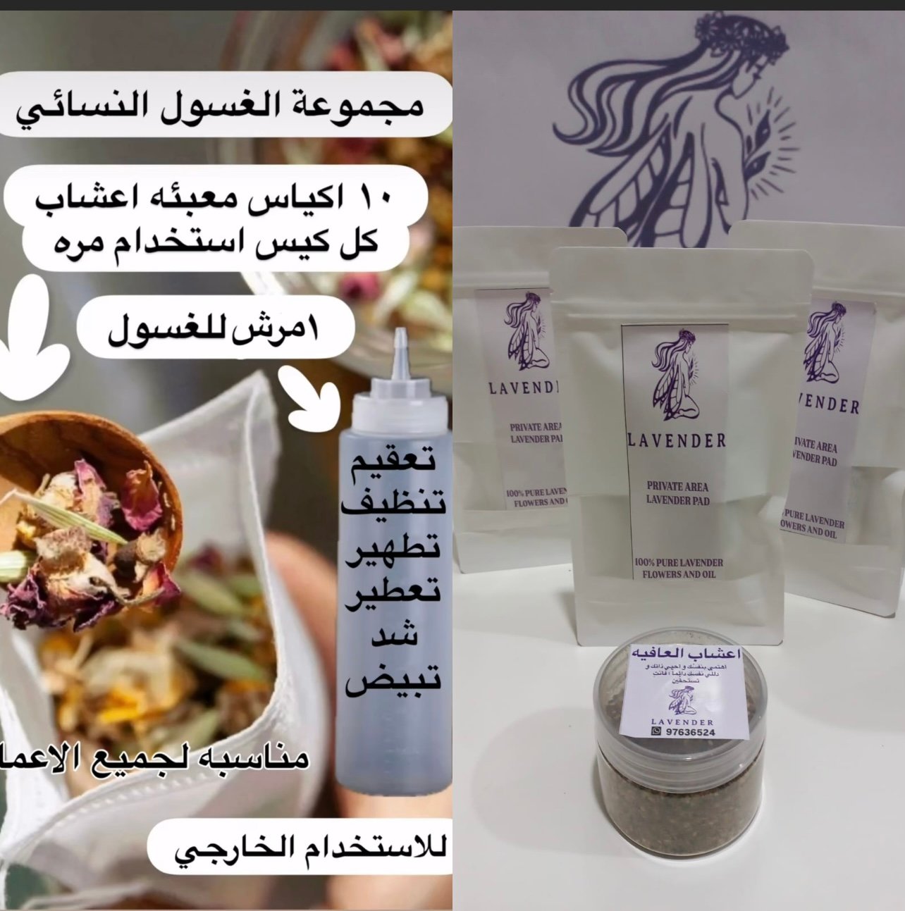 ٣ فوط خزامى (لافندر)للمنطقه الحساسه ١ غسول الاعشاب الطبيعي الانثوي ١ اعشاب العافيه